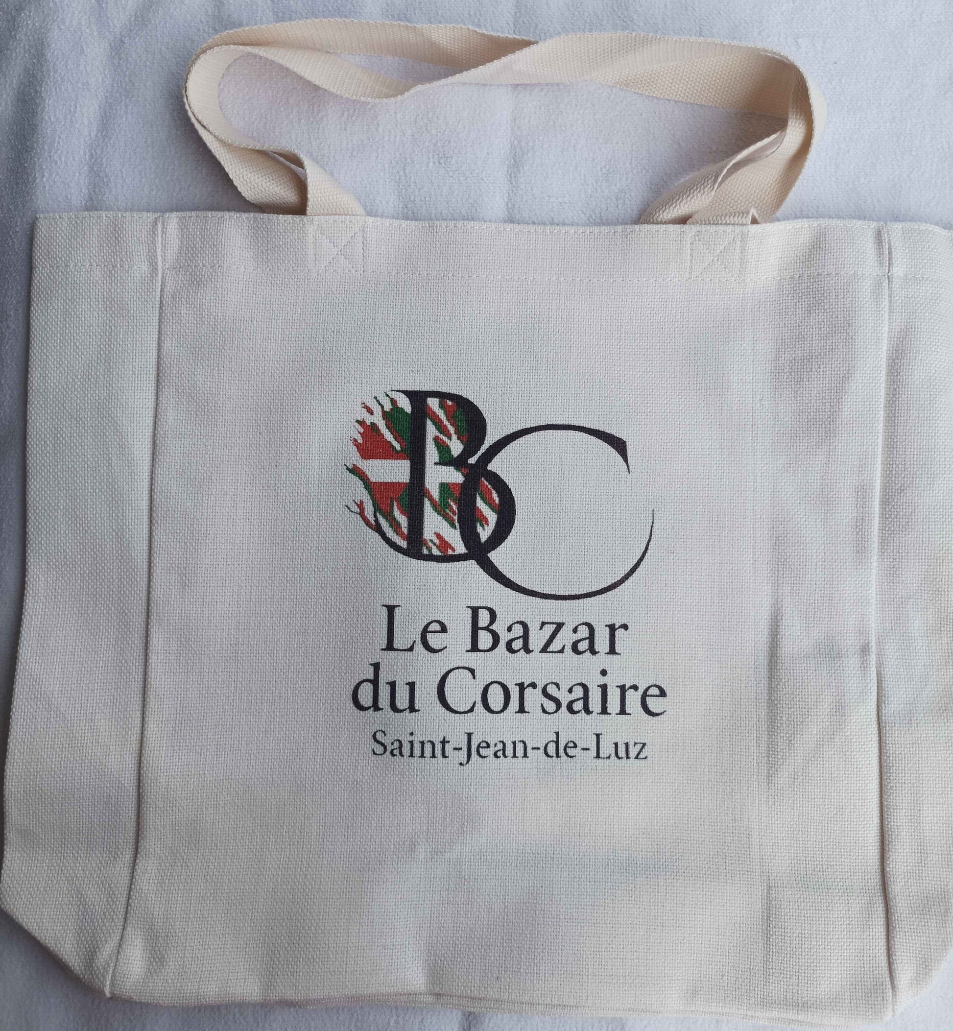 Verso : logo Le Bazar du Corsaire â Saint-Jean-de-Luz avec lâinscription âLâĂąme basque sur toutes les couturesâ, une signature unique et authentique.